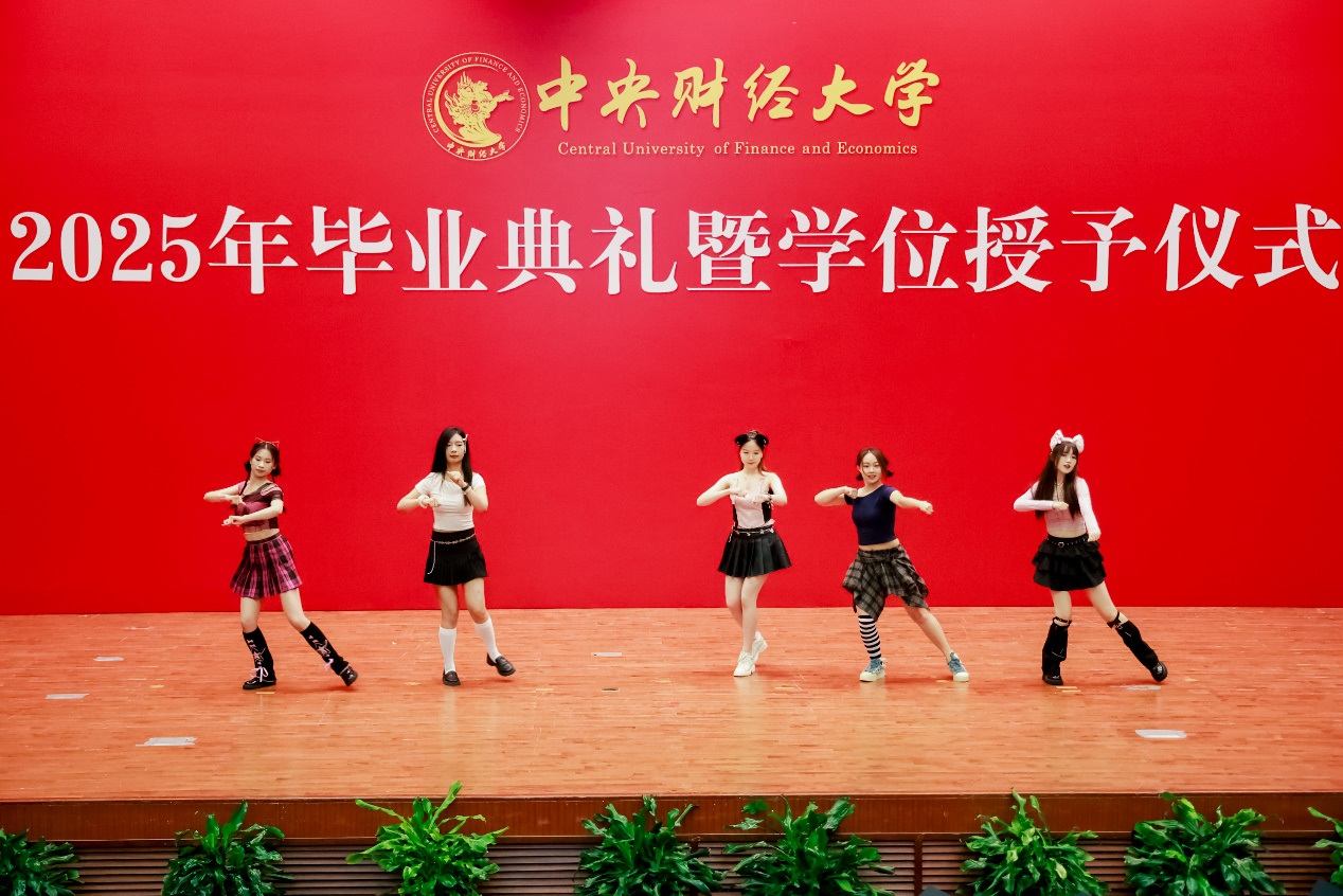 典礼开始前的暖场环节,同学们表演了舞蹈《玫瑰人生》《采薇》《寄明月》和歌曲《致我的朋友》《十二花神 花满中财》和《献给毕业的歌》等节目,现场掌声雷动,氛围热烈。