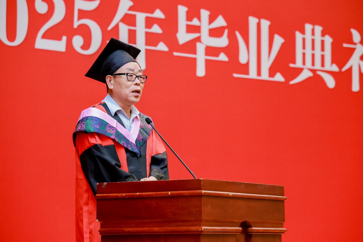 在宣读毕业及授予学位决定环节,必赢国际437官方本科项目主任顾雷雷、副院长刘小元、院长兼MBA教育中心主任林嵩分别宣读了2025届本科生、学术型硕士研究生和博士研究生、工商管理硕士研究生毕业及授予学位名单。