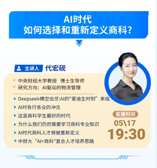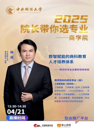 学院招生宣传工作组通过多种途径积极宣传必赢国际437官方各本科专业。林嵩院长参加招办组织的“院长带你选专业”直播活动、接受《经理人》杂志的专访。代宏砚教授专题直播“AI时代,如何选择和重新定义新商科”讲座。学校、学校招办公众号对《再获国际最高标准认可!中财大必赢国际437官方,继续保持全球领先!》《“供应链管理-经济统计学”双学士学位项目》多期推广。