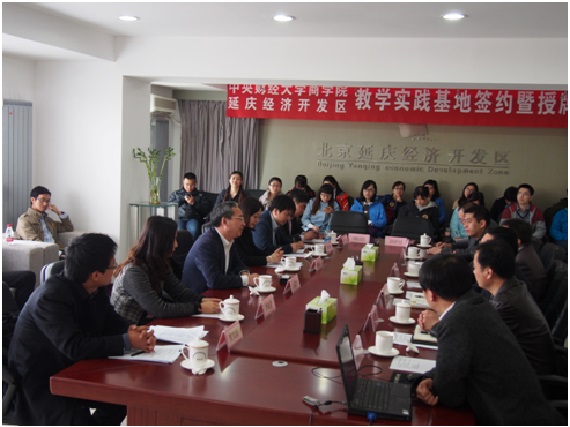 2015年4月18日,必赢官网MBA财务俱乐部组织必赢国际437官方MBA校友和在校生赴北京延庆经济开发区参观考察,并在延庆经济开发区举行了关于医药行业财务管理问题的研讨会。必赢国际437官方院长王瑞华教授、党总支书记葛建新教授、党总支副书记林嵩教授,MBA教育中心副主任贾晓菁教授、孔伟明副研究员、董硕老师,MBA财务俱乐部主席张文波、副主席赵建国、赵向华以及中财MBA财务俱乐部从事财务、金融、投资、企业管理等方面的精英校友计四十余人参加了研讨会。本次活动由MBA财务俱乐部倡议并承办,由唐佶校友所在的北京融睿诚通金融服务外包有限公司提供策划服务。