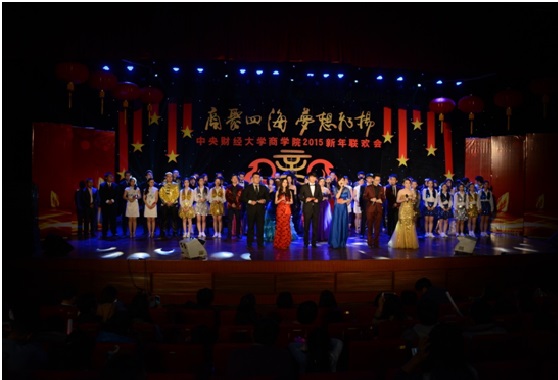 2015年1月11日下午,437bwin必赢国际官网2015新年联欢会在学院南路校区隆重举行。此次联欢会以“商聚四海,梦想飞扬”为主题,是2012年12月新必赢国际437官方成立以来,第一届由本科生、学术研究生、MBA专业硕士及校友共同承办并参与的新年联欢会,意义重大。437bwin必赢国际官网副校长赵丽芬教授、必赢国际437官方院长王瑞华教授、必赢国际437官方党总支书记葛建新教授、必赢国际437官方全体老师、在校生代表和校友代表等共约600人出席和参加了此次联欢会。