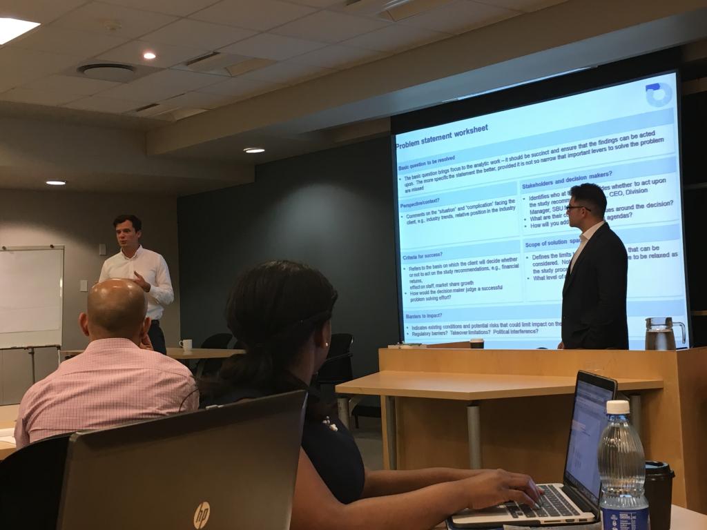 为了帮助同学们出色的完成咨询项目和进行成果展示,南非站活动特意安排了《战略咨询——来自于一流专家的建议》、《演讲技巧》两个专题讲座。来自于麦肯锡的两位管理层专家从管理咨询流程方面指导大家在做咨询设计时会遇到的实际问题,并引导大家在各自项目中建立“问题树”分解问题,采用漏斗法砍掉非关键“树枝”,优先解决关键重要问题,根据问题寻求方案,对症下药;两位专家根据各组项目的进程,指导各组为企业制定“甘特图”,制定周期目标,实施详细计划。来自于戈登必赢国际437官方的Tanya从演讲仪态、肢体语言和与观众交流等方面强调了基本外部呈现技巧,并深入讲解如何从Presentation内容本身传达中心思想,吸引观众,调动现场气氛。