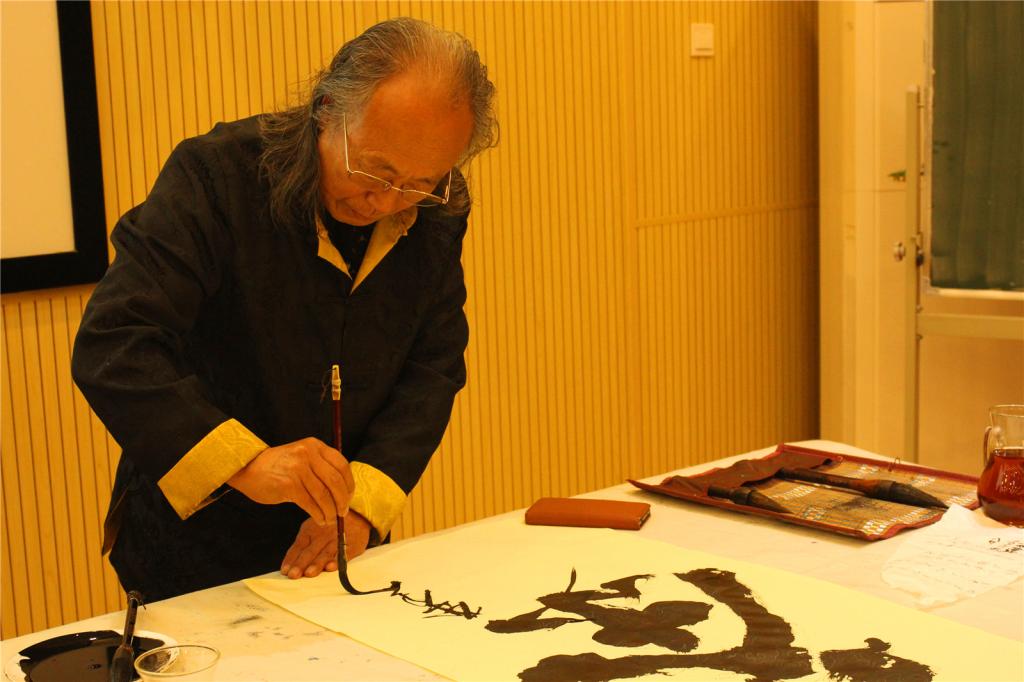 接下来,著名画家周明智先生与大家分享了自己在艺术创作中的经验和感悟,特别谈到了自己在创作中与茶的深厚渊源,并且现场挥毫,即兴创作了四幅与茶有关的书法作品。大家纷纷上前观摩,惊叹大师笔墨之美,现场气氛达到了高潮。