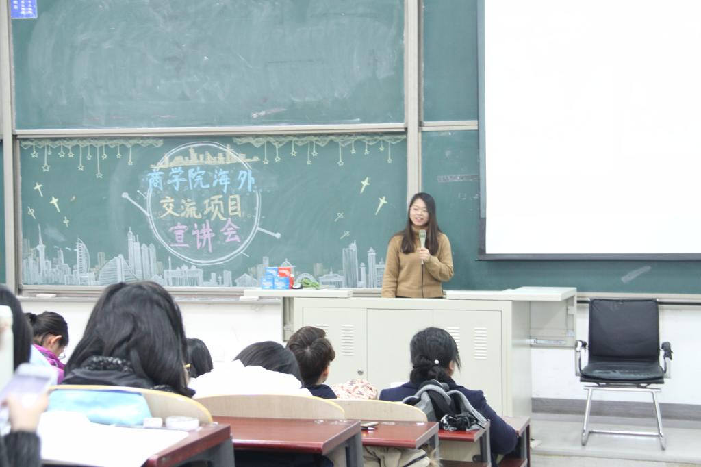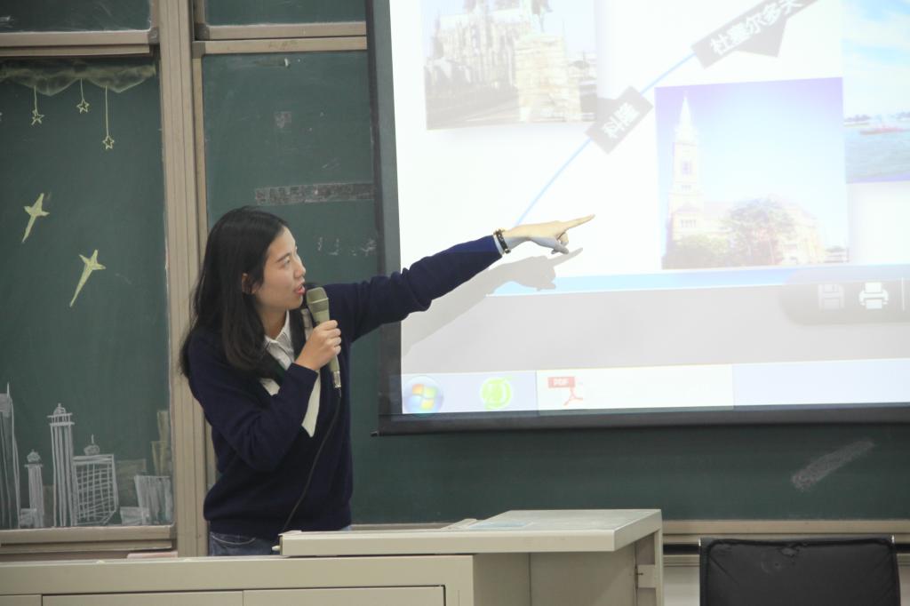 接下来,曾参加美国霍华德大学交换学习的2013级本科生黄文豪、辅仁大学交换学习的2013级本科生王园园、InterGest Worldwide公司实习的2015级硕士研究生夏锐分别从学习和实习两个维度就自身的海外交流经历、感受、心得体会与在座的同学们做了分享,并为在座的同学们讲述了当年申请参加交换学习和实习项目的准备工作、备考经历、交换期间的体会和收获。三位同学不约而同的指出,在学生时代出国看一看,最大的收获是极大的锻炼自己适应环境的能力、语言能力,以及在不同环境下与同事进行和睦共事的能力,拓展了思维和价值观,对于自身成长和职业生涯长远发展都是非常有裨益的。
