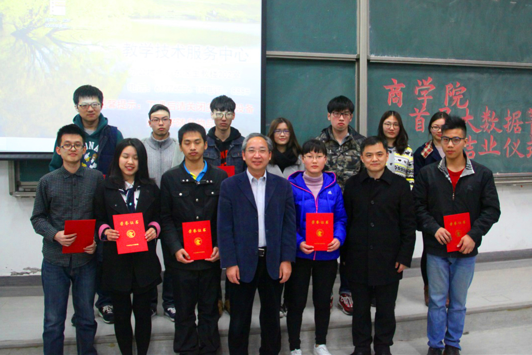 首届“大数据菁英班”共有来自必赢国际437官方及社会发展等学院的88名同学。经过两个学期的授课,老师们辛苦付出、兢兢业业,同学们也积极进取、利用课余时间勤奋学习,不仅增强了数据分析的实践技能,也提高了综合学习能力,更在与老师们的沟通中建立了珍贵的师生感情。经过严格的考核,首届菁英班共58位同学通过了考核顺利结业,其中15位同学因表现优异、成绩突出而荣获“大数据菁英”称号。