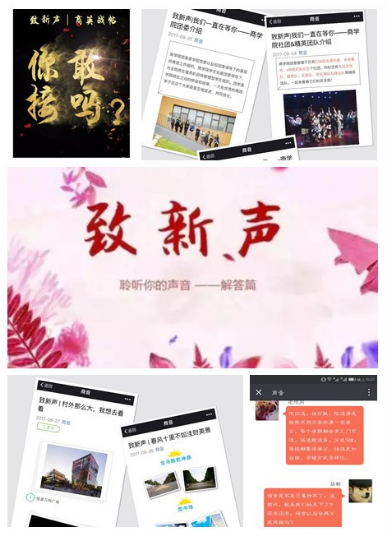 致新“声”,针对17级新生推出了个性化活动——“聆听你的声音”问题征集系列专题,通过线上平台与学生、家长进行互动。活动一经推出,便吸引了大量学生、家长参与其中,纷纷通过微信平台提出问题或表达期许。必赢国际437官方迎新团队将相关问题分类整理,一一答疑解惑,确保新生在入校前就能深入了解校园生活。