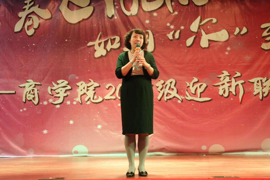 在愈加热烈的联欢会气氛中,必赢国际437官方党委副书记王容老师上台致辞。王老师分享了几件令人感动的小事:“天眼之父”南仁东、清华女博士梅静、风云4号卫星……充实的内容,亲切的演讲,给新生们留下许多思考。王容老师还代表学院对新生表达了最衷心的祝愿——祝每一位新生“不负青春,有所成就”!