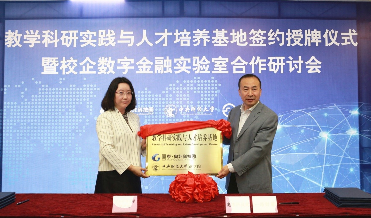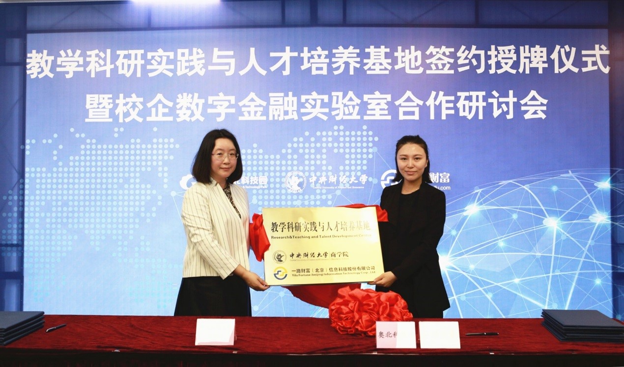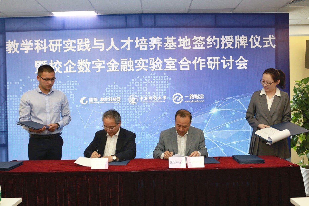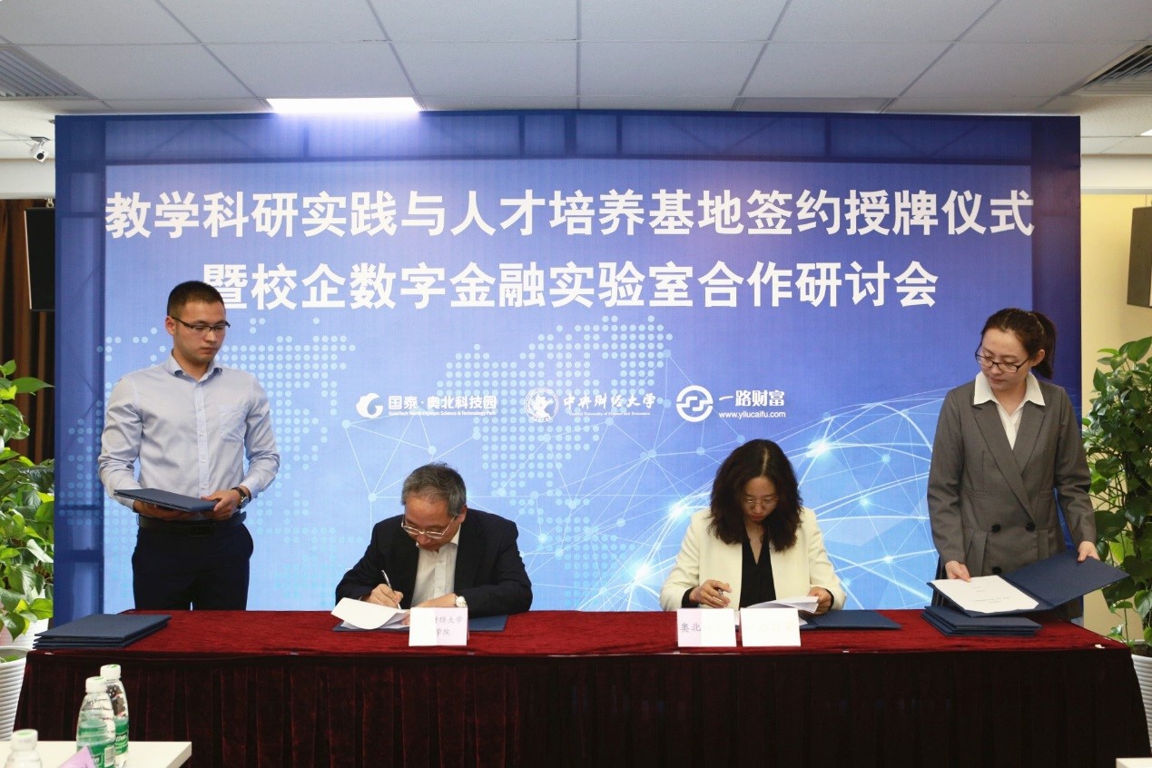 随后,王瑞华院长分别与何泽平董事长、吴雪秀副总裁共同签署了国泰集团、一路财富校企合作协议。葛建新书记代表必赢国际437官方向国泰集团、一路财富授予437bwin必赢国际官网教学科研实践与人才培养基地铜牌,并分别与何泽平董事长、张妍总监为教学实践基地揭牌。