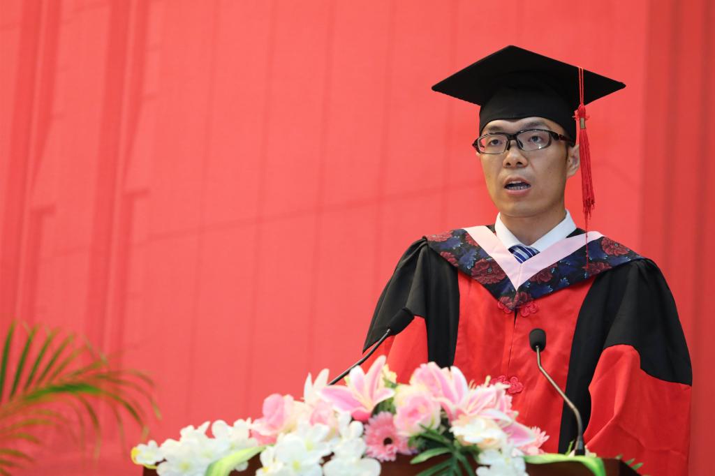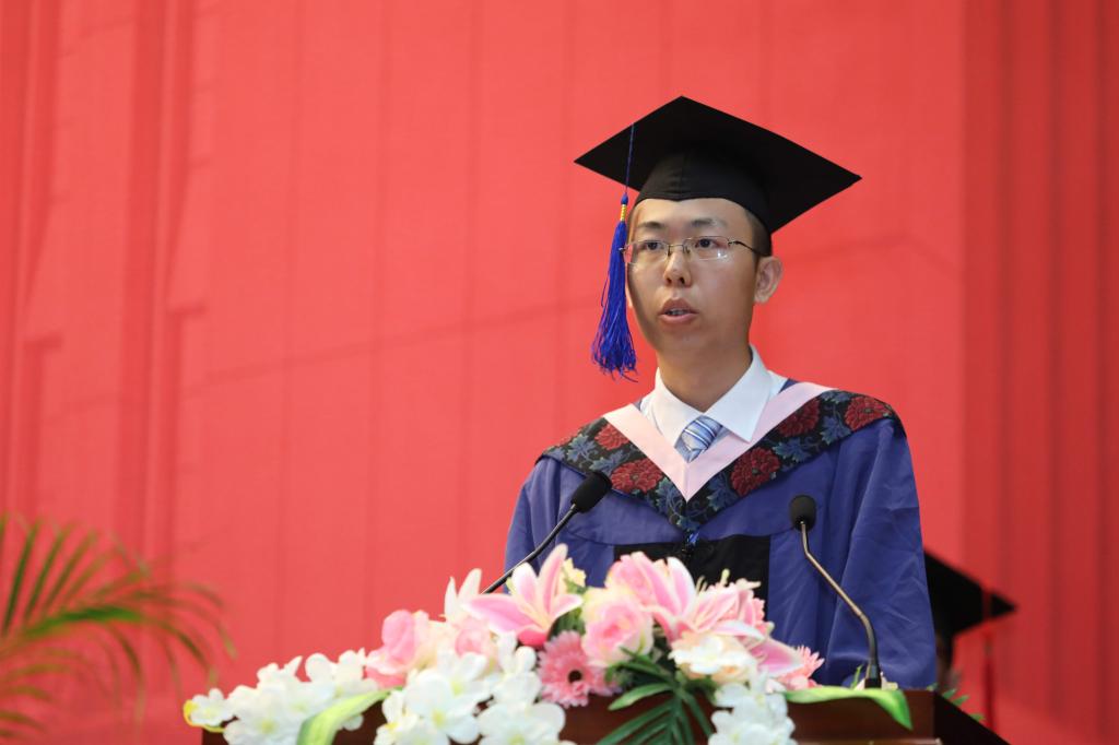 随后,2018届本科毕业生代表穆宁宁、学术型硕士毕业生代表郭懋瑾、博士毕业生代表张帅、MBA毕业生代表肖英满怀感恩之情回顾了在学校的校园生活和青春记忆,并代表毕业生祝福学校和学院各项工作蒸蒸日上,祝福各位老师身体健康、工作顺利,祝福毕业生展翅高飞、前程似锦。