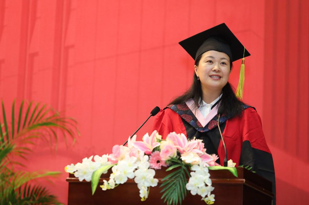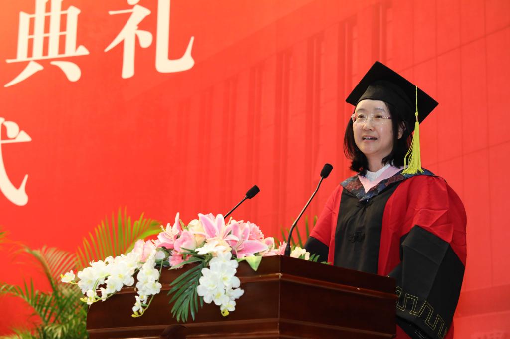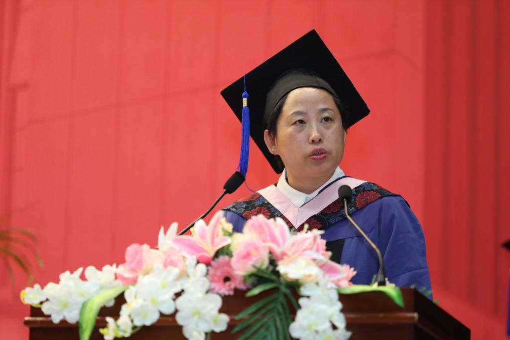 安秀梅秘书长随后发表致辞,她代表校友总会和全球12万中财校友向全体毕业生表示热烈祝贺,并郑重接收大家成为437bwin必赢国际官网新校友。她说成为校友意味着大家的发展又多了一层支撑,人生又进入了一种新境界,肩上又多了一重新责任。安秀梅秘书长希望全体毕业生们能够继续发扬“忠诚、团结、求实、创新”的中财精神,励精图治,开拓创新,敢于担当,勇往直前,为母校增光,为祖国的繁荣昌盛、为中华民族的伟大复兴贡献自己的力量!