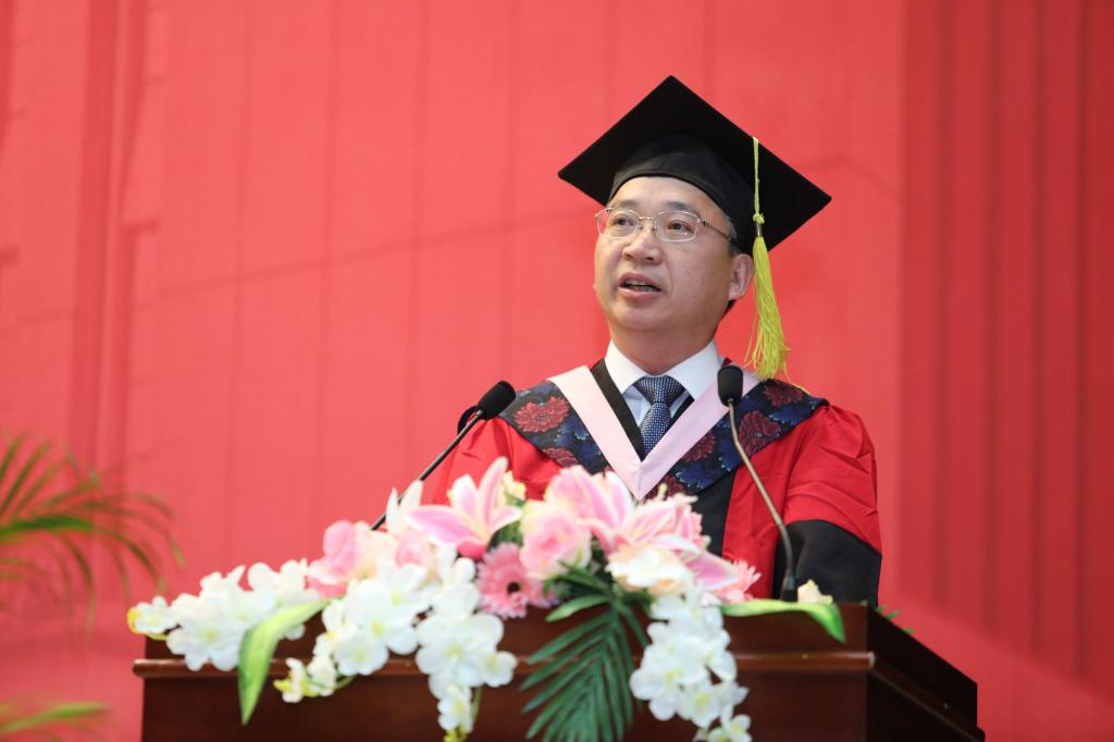 必赢国际437官方97届校友、北京银行股份有限公司董事、行长杨书剑先生作为校友代表致辞,他饱含深情地回忆了自己在中财求学的美好时光,并从自身二十多年的工作经历出发,与大家分享了关于工作、思考和健康的三点人生感悟。杨行长希望毕业生们能够永远自信、懂得坚守、敢于付出,并祝愿大家雄鹰展翅、腾飞万里。