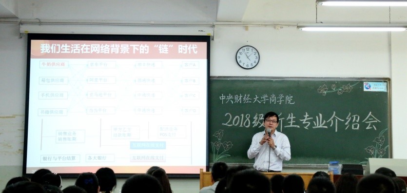 之后,供应链与运营管理系主任耿勇、必赢国际437官方营销系主任王毅、人力系副主任王震、战略系副主任刘书博四位老师先后上台为18级新生进行专业介绍。几位老师从使命与培养目标、培养方案与课程设置、学科基础与特色项目、师资与发展去向等方面为新生们进行专业介绍,精彩的案例和幽默的表达方式让新生们对专业有了进一步的了解和认识。