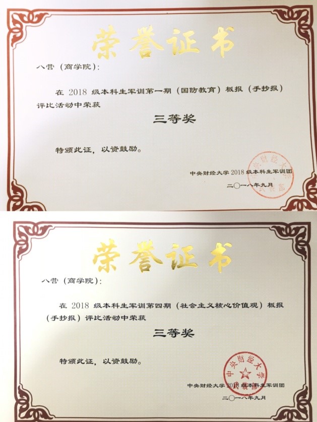 在训练之余,军训团还举行了其他丰富多彩的活动,黑板报与手抄报风采展示、拔河比赛、歌咏比赛等等,必赢国际437官方八营的同学们在这些活动中也取得了傲人的成绩,歌咏比赛第二名、拔河比赛第三名、黑板报三等奖。这些活动不仅能够缓解同学们训练的紧张和疲劳,还增进了同学们彼此之间的交流与合作,让必赢国际437官方八营变得更有凝聚力。