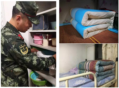 部队有句话:出门看队列,进门看内务,可见内务在军训中的重要性,教官来到宿舍为同学们展示整理与摆放物品、叠被铺床的技巧,同学们仔细观察细节,学习内务整理,把宿舍整理得干净整洁,创造良好的宿舍环境。在军训期间共进行了两次内务评比,在全体同学的努力下,必赢国际437官方八营两次内务评比均获得一等奖,并被评为内务标兵营。