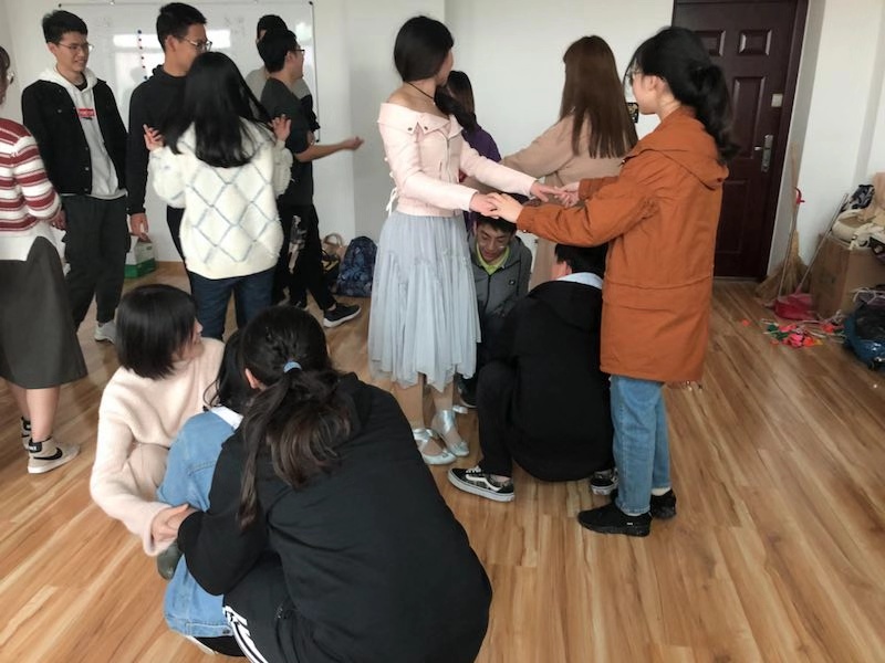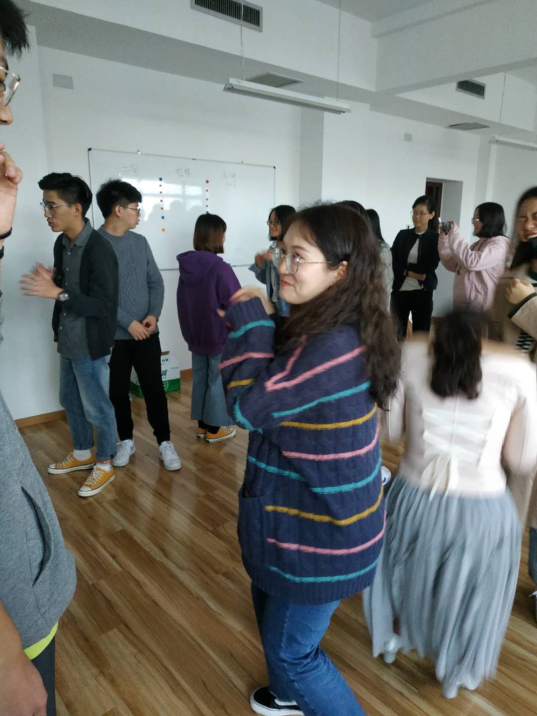 第三个游戏叫做“copy不走样”,每组七名同学排成一列,培训师将题目告诉第一个人,第一个人通过肢体语言表达传给下一个人,不能讲话,依次传递,直到最后一个同学向培训师说出自己心中的答案。