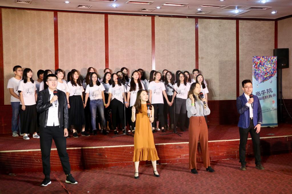舞会上篇的压轴节目是由学硕18带来的合唱《相亲相爱》,表达了新生融入大学生活,在必赢国际437官方大家庭里和睦相处,共同进步的美好愿望。
