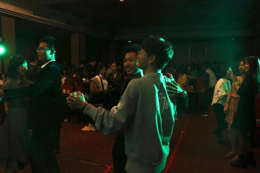 假面舞会环节,同学们带上舞会面具邀请舞伴来到舞池,一边交谈,一边迈着青涩的舞步,在舞蹈的时光里拉近彼此的距离。