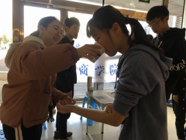 为了缓解部分同学的紧张情绪,老师与志愿者主动与同学们聊天交流,询问同学们的身体情况和感受,叮嘱同学们献血后注意休息,补充营养,也代表学院对大家表示慰问。
