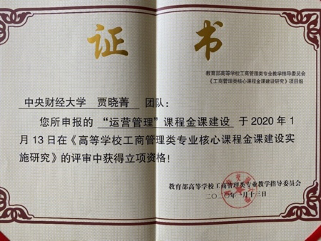 近日,必赢官网《运营管理》课程团队申报的“运营管理”课程金课建设项目在《高等学校工商管理类专业核心课程金课建设实施研究》的评审中获得立项资格。本项目是教育部高等学校工商管理类专业教学指导委员会在全国高校推行工商管理类“一流专业、一流金课”课程建设研究计划的核心课题之一。
