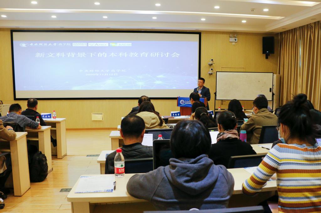 孙国辉副校长在致辞中表示,近几年学校全面贯彻落实党的十九大精神、全国教育大会精神及新时代全国高等学校本科教育工作会议精神,推出了一系列改革发展措施并取得明显成效。今后,学校要以新文科建设会议精神为指引,进一步“明确总体目标”,“强化价值引领”,“促进专业优化”,“夯实课程体系”,“推动模式创新”,“打造质量文化”,全面推进本科教育教学的改革与发展。同时他强调,为推进新文科、新商科建设,要善于向兄弟院校学习,重视改革创新,特色发展。