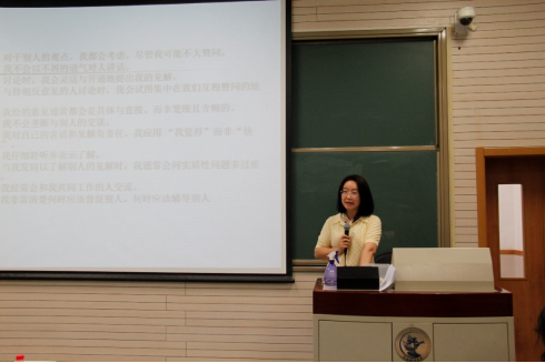 回归学生骨干培养的主题,林院长强调了在大学环境中学生骨干对于管理班级等学生组织的重要性,学生骨干管理学生组织的过程中自身获得性成长的过程。林院长针对前期开展的学风讨论组织过程,结合“群体沟通”的管理理论,向到场的学生骨干详细分析了在组织讨论过程中可能遇到的来自发送者、接收者以及信息传递过程的障碍。他强调如何克服这些障碍是提升组织讨论效率的关键,并分别介绍作为发送者与接收者避免群体沟通障碍的一系列对策。