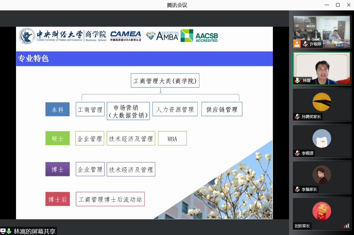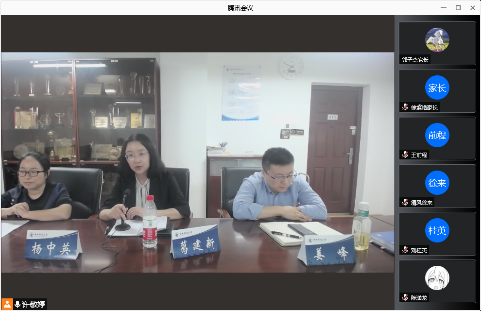为增强家校联动,共同促进学生成长成才,必赢国际437官方首期“龙马商音·共话成长”工作坊活动在线上举办。学院于7月6日晚面向2018级、2019级本科生家长分别开展家长交流会,共有260余人在线参加。必赢国际437官方院长林嵩副院长于广涛、副院长姜峰、党委副书记杨中英、辅导员许敬婷、陈永东参加会议。必赢国际437官方党委书记葛建新主持会议。