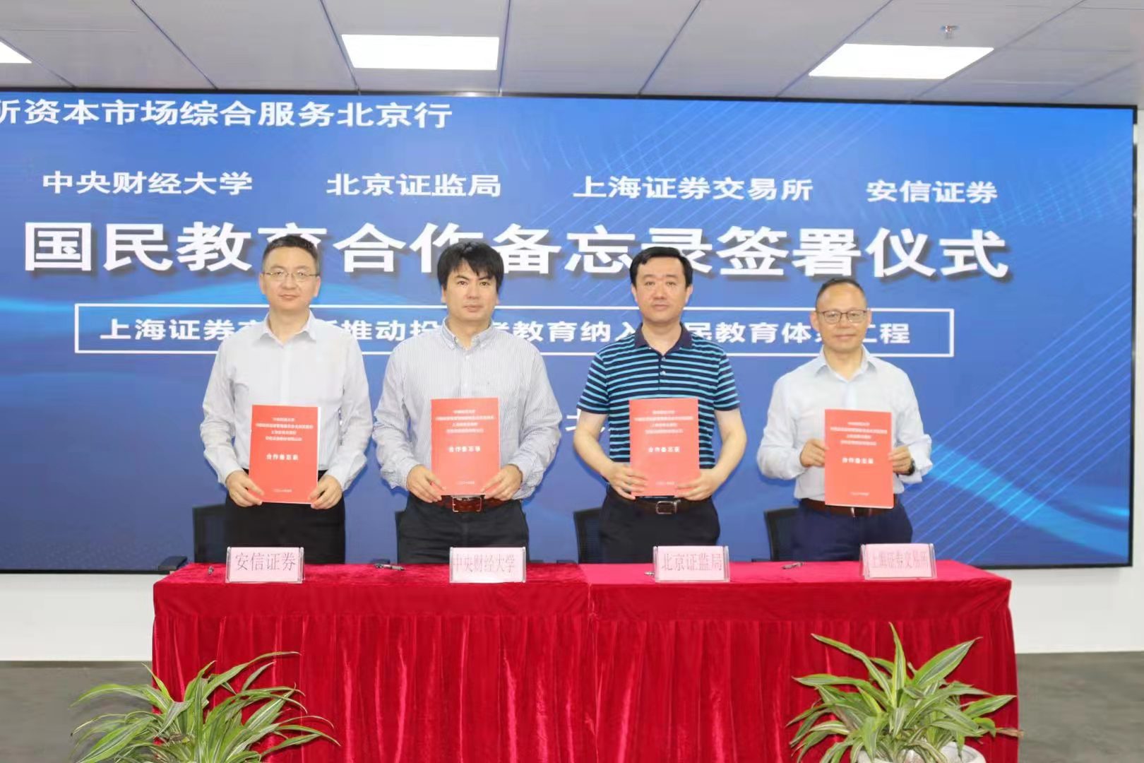 7月16日,437bwin必赢国际官网与上海证券交易所、北京证监局和安信证券四方合作协议签约仪式及战略合作座谈会在北京融汇国际大厦举行。上交所北方市场服务中心郭洪俊主任,437bwin必赢国际官网兼MBA教育中心主任林嵩教授,北京证监局投保处倪志全处长和安信证券刘纯亮总经理出席活动并讲话。