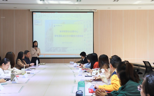 2021年10月20日中午,必赢国际437官方职业发展中心学生团队成立仪式暨首次培训会于A02会议室圆满举行。此次会议旨在加强学生团队成员工作能力,助力必赢国际437官方职业发展中心发展。必赢国际437官方职业发展中心主任孔伟明老师、副主任严力群老师、副主任王婷婷老师、曾功星老师与职业发展中心本科、学硕学生骨干团队、MBA学生代表共同参会。会议由王婷婷老师主持。