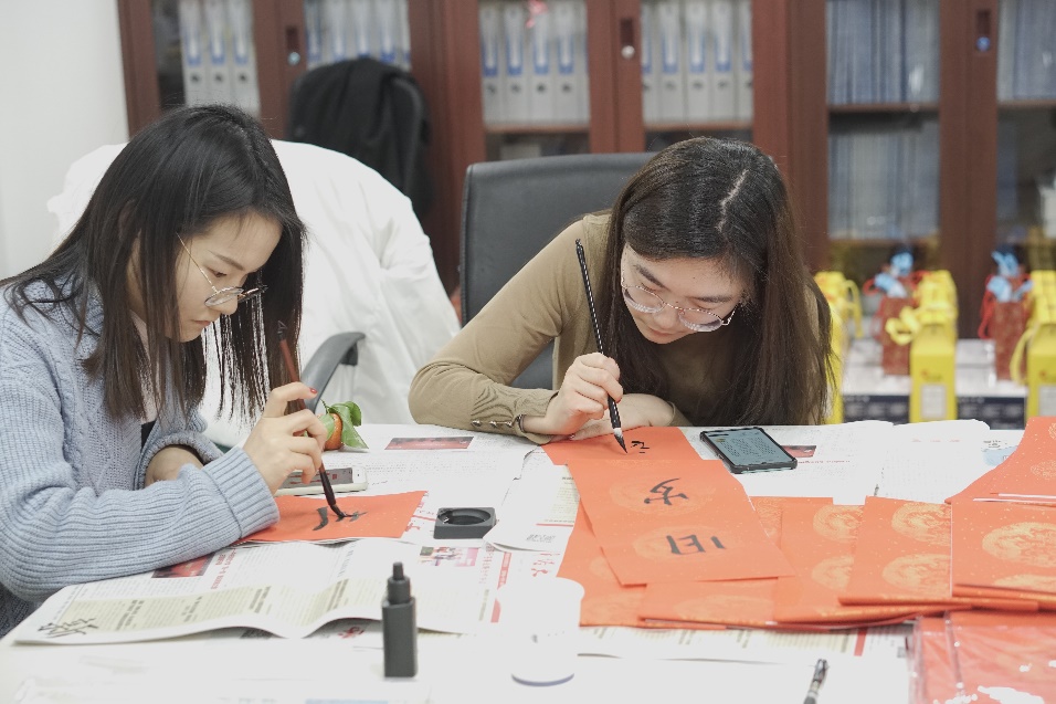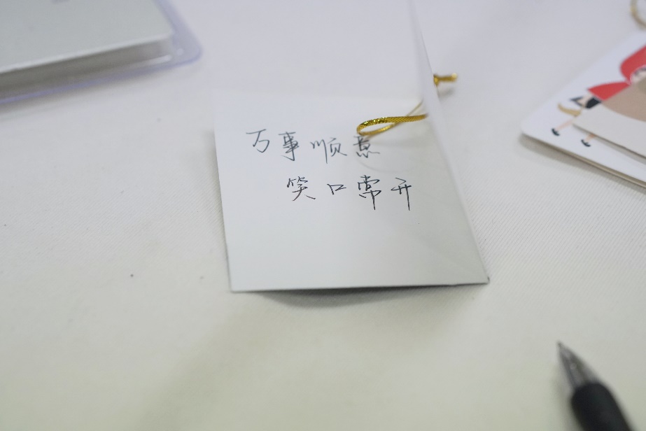观影活动后,迎新春的娱乐活动环节让602会议室充满了更加热烈的欢声笑语。留校同学从陌生玩到熟识,共同分享过年的开心和喜悦。有的同学拿出书法特长挥洒笔墨,抒写新春喜乐;有的同学在精巧贺卡上描绘真情,表达真挚祝福;有的同学进行桌面游戏,相互之间来一场思维推理的碰撞;有的同学通过小游戏相互逗乐,为新春增添温暖时光……。