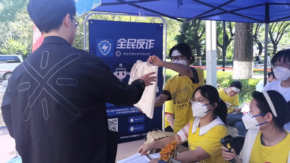 学四宿舍楼下的行李协助点,志愿者们期待新同学的到来