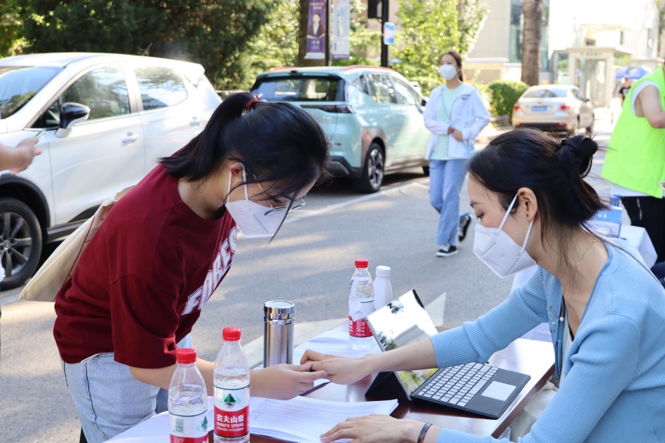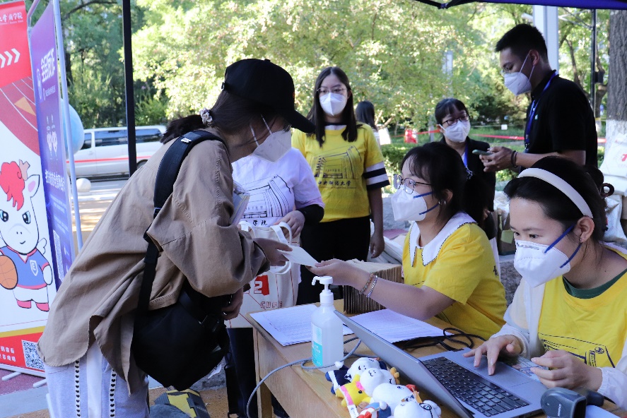 初来乍到的商院萌新,在志愿者的引导下完成信息录入