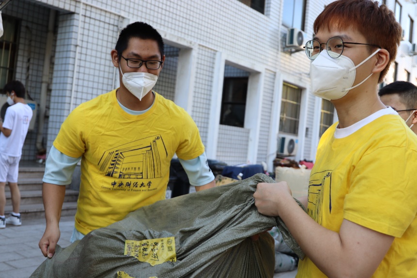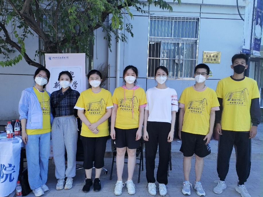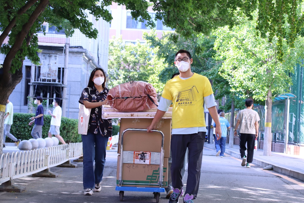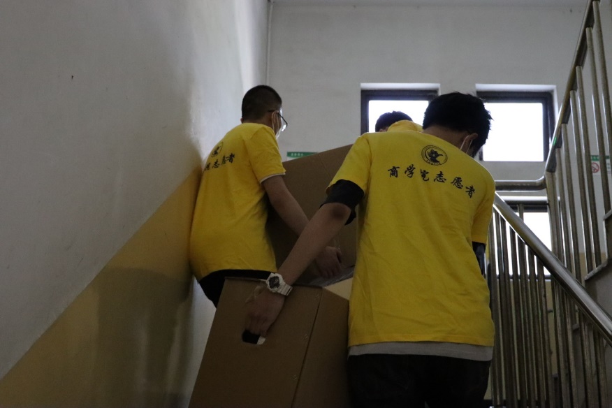 在学五宿舍楼下,必赢国际437官方院长林嵩、必赢国际437官方副院长于广涛、组织与人力资源管理系主任王震、辅导员曾功星也加入了行李搬运队伍,和志愿者一起帮助萌新们。