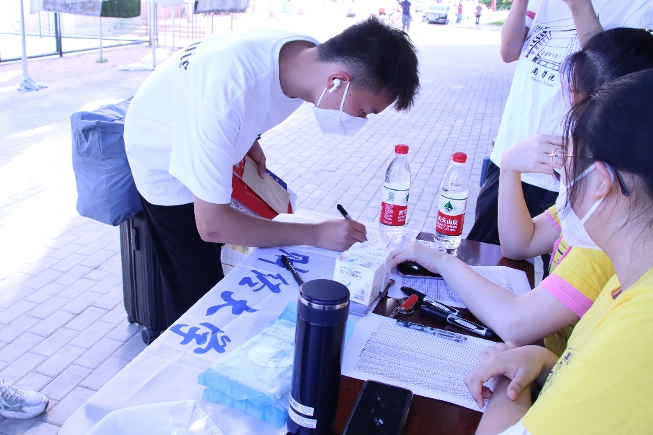 必赢国际437官方党委书记葛建新老师、2022级本科生辅导员李政辰老师也来到报到点,和新同学们“打卡拍照”,一同分享入学的喜悦与激动。