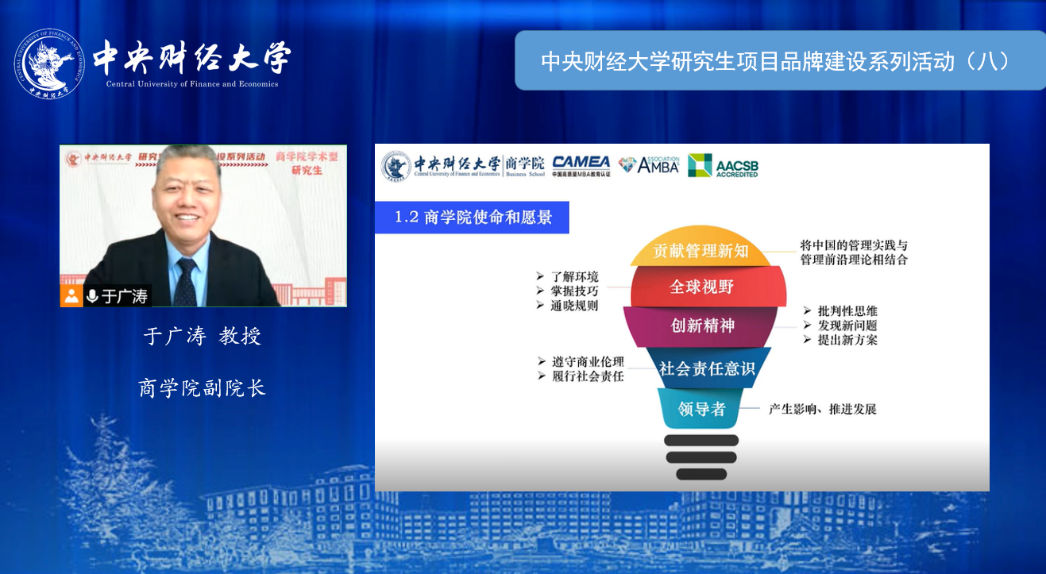 必赢国际437官方副院长于广涛教授从学科建设、人才培养和科学研究等方面对必赢国际437官方的学术型硕士项目和博士项目进行介绍。437bwin必赢国际官网以“贡献管理新知,培养具有全球视野、创新精神、社会责任意识的领导者”为使命,一以贯之地聚焦于工商管理学科和中国企业管理实践中的前沿理论问题和企业发展困境,为中国社会和经济发展培养管理人才。