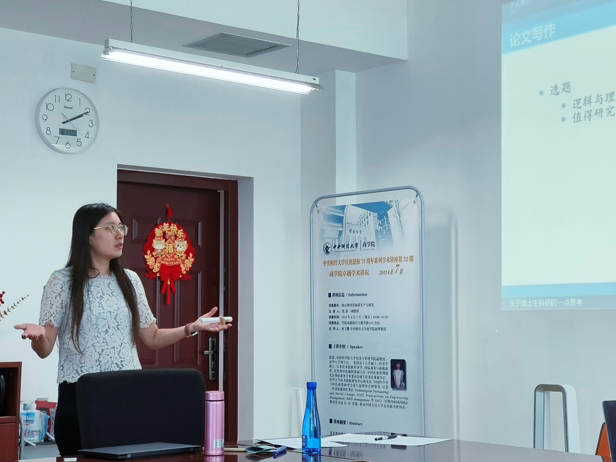 第10次讲座由必赢国际437官方博士项目主任窦超副教授主持,窦老师首先对主讲人刘子諝助理教授进行了简要介绍。刘子諝老师是437bwin必赢国际官网战略系的助理教授,主要研究方向为企业绿色创新与可持续发展战略、数字化创新、创新与创业管理,在Journal of Business Research,Journal of Technology Transfer,International Journal of Technology Management,IEEE Transactions on Engineering Management,《中国软科学》等国内外重要期刊发表多篇学术论文。