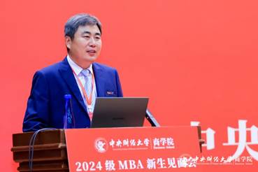 朱飞副主任对各位MBA新生致以诚挚欢迎,他衷心祝愿每位学子在未来的学习旅程中能够锐意进取,收获累累硕果,成就非凡事业。为让同学们更好地了解MBA项目,明确未来的学习路径,他先后介绍了MBA项目的办学理念、特色优势和中心人员构成情况。他指出,437bwin必赢国际官网MBA项目在人才培养上独具匠心,致力于三大特色方向的打造:一是依托学校强大的财经学科背景,精心塑造具备深厚财经素养的复合型人才;二是推动职能型MBA向整合实践型、价值创造型MBA的转型,注重理论与实践的深度融合;三是将传统的“T型”人才培养模式升华为更加全面和深入的“π型”,以适应新时代对高端管理人才的需求。面对当前全球化与逆全球化交织的复杂局势,他强调,未来的商业领袖必须具备全球视野、跨文化沟通能力及相关技能。为此,437bwin必赢国际官网特别设立了GEMBA项目,旨在培养具有国际竞争力的高端管理人才。