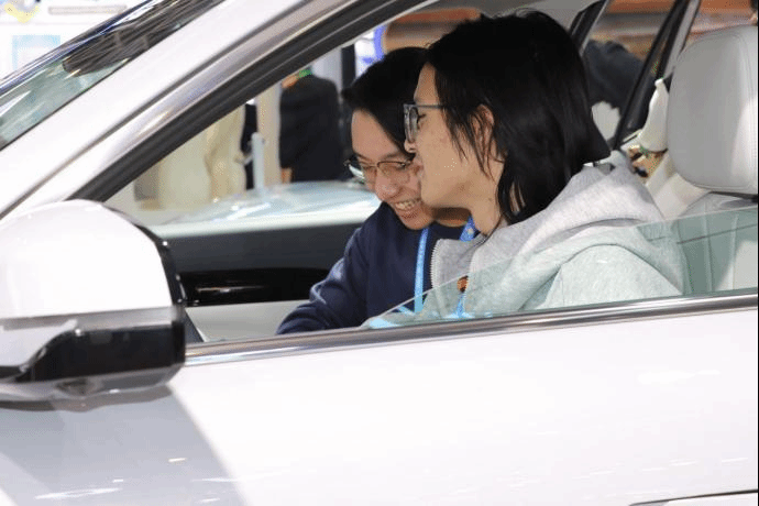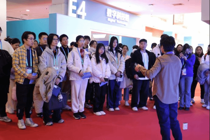 学生参观展厅和体验产品