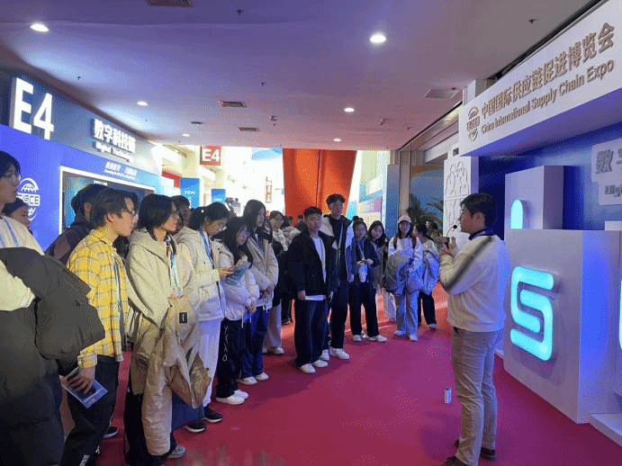 集体授课后,由437bwin必赢国际官网党委副书记杨中英带队,师生共同深入参观会场,与各参展商展开积极互动交流,亲身体验并深入了解当前国内外产业链供应链六大领域的前沿技术与创新模式。