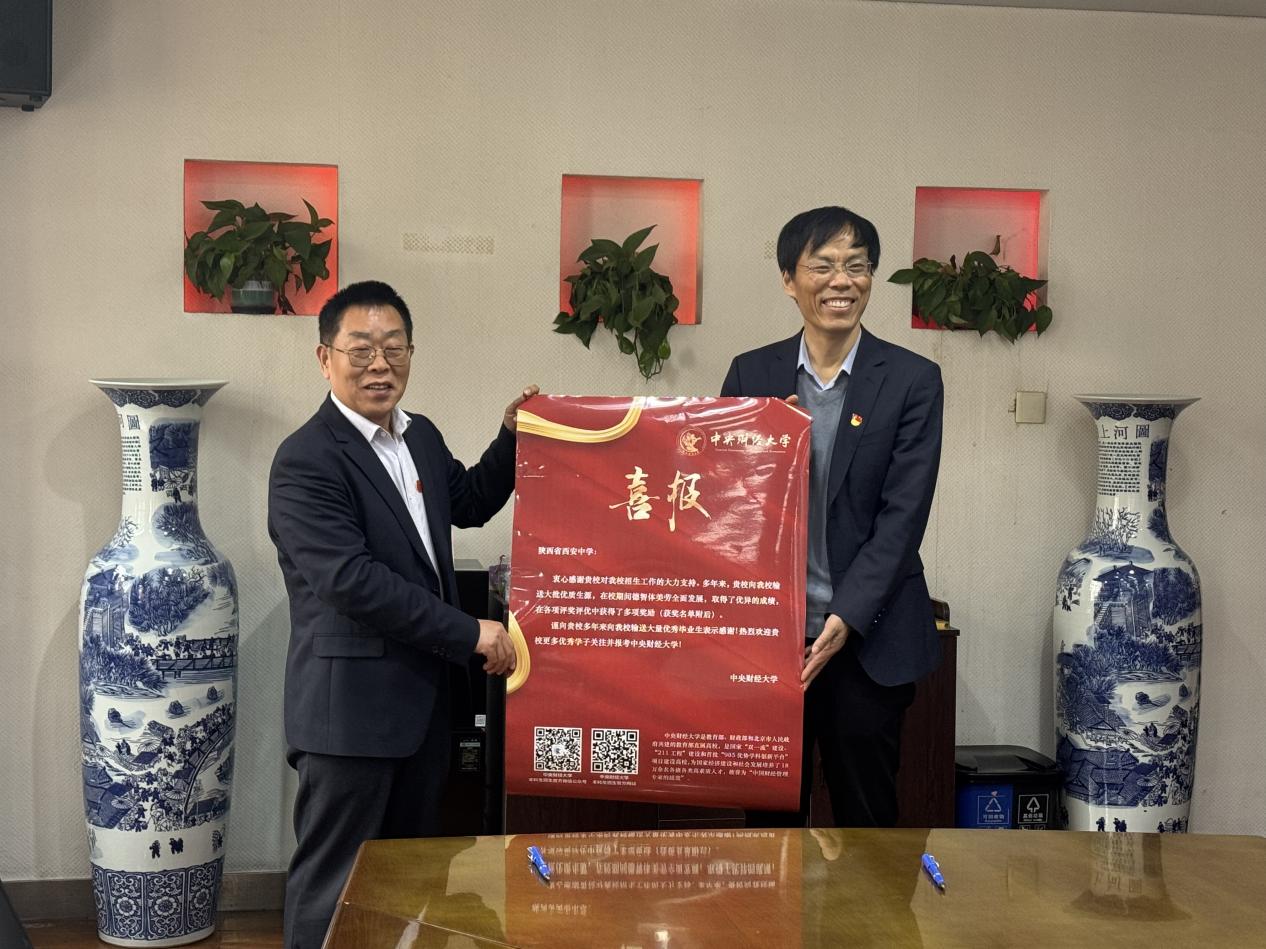 11日下午,由必赢国际437官方党委书记李跃新带队,陕西招生宣传组前往陕西省西安中学开展“437bwin必赢国际官网优质生源基地”签约授牌仪式。西安中学副校长薛党鹏,教学处主任吕铎、副主任王理及国际部主任安秀萍参加授牌签约仪式,活动由教学处主任吕铎主持。李跃新代表必赢官网与中学签署《437bwin必赢国际官网生源基地建设协议书》并授牌。宣传组深入了解了西安中学的校史校情和生源情况,向该校领导介绍了必赢官网的基本情况和2024年在陕西省招生情况。双方就加强合作,相互促进,共同构建基础教育与高等教育间的桥梁进行了充分交流。
