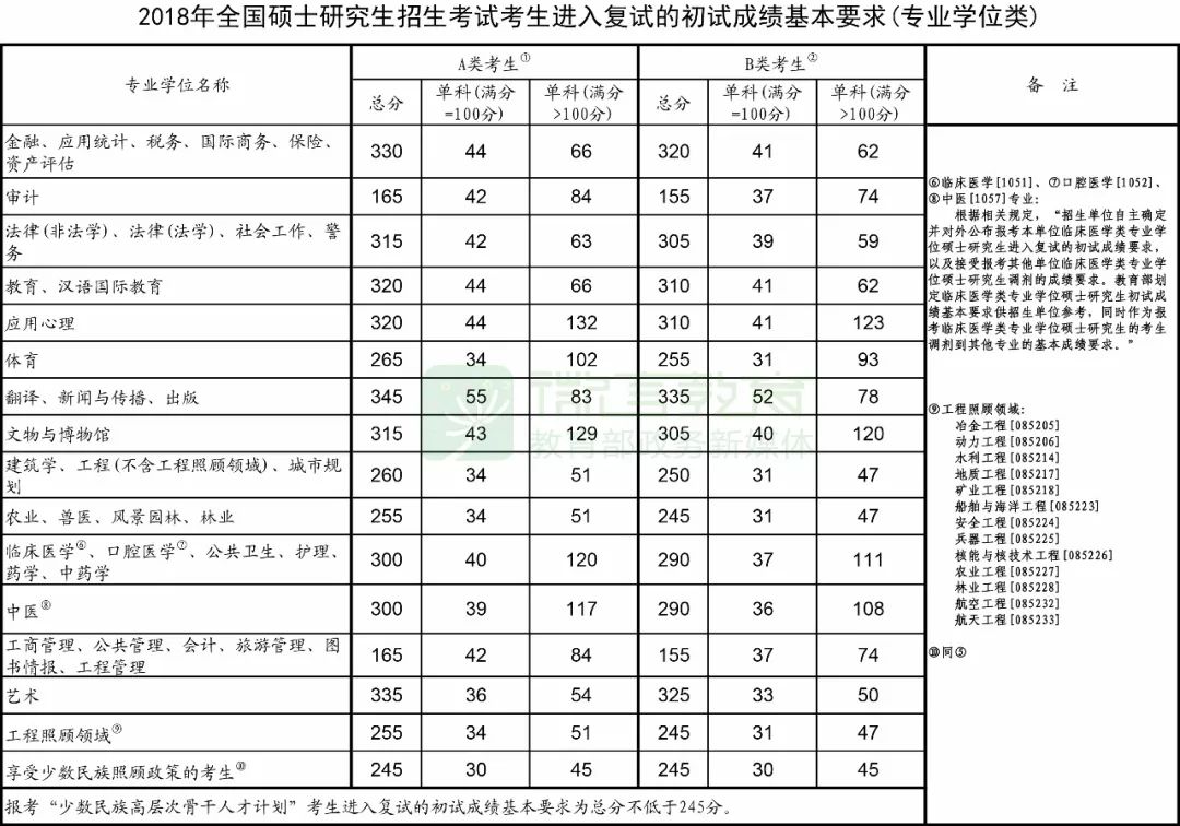 2018年全国硕士研究生招生考试国家线发布