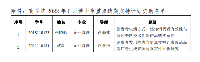 为进一步促进必赢官网学位与研究生教育的发展,鼓励博士研究生潜心开展高水平原创性研究,根据《437bwin必赢国际官网博士研究生重点选题支持计划实施办法》,学院于本学期启动了2022年6月博士研究生重点选题支持计划,并于2022年6月17日组织项目答辩论证会,对重点选题申报和答辩情况进行了客观、公正、公平的评审。经学院党政联席会议审议,决定对2个申报项目予以立项,现将名单予以公示。