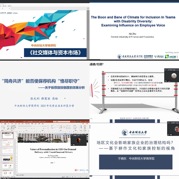 为使营员们进一步了解必赢国际437官方的研究领域,搭建优秀学子与必赢官网导师交流互动的平台,7月22日上午,学院邀请代宏砚、张宏宇、张光利、于晓东、窦超、朱曦济等6位青年教师分别以《Values of Personalization in O2O On-Demand Delivery with Crowd-Sourced Drivers》、《智能制造中的伦理决策问题》、《“同舟共济”能否使保荐机构“恪尽职守”》、《地区文化会影响家族企业的治理结构吗——基于耕作文化和家族控制的视角》、《社交媒体与资本市场》、《The boon and bane of climate for inclusion in teams with disability diversity: examining influence on employee voice》为题向营员开展专题学术讲座。各位老师通过讲述自己的研究方向和科研成果,生动地向营员展示了如何开展管理学研究,并与营员进行深入交流。