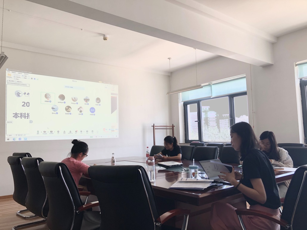图:6月21日,必赢国际437官方开展2021年本科招生宣传工作培训会,会议在线上线下同时进行。连续3年参与招生宣传工作的孙翔老师、许敬婷老师面向所有工作小组成员进行业务培训和经验分享。党委副书记杨中英老师强调工作纪律和安全。