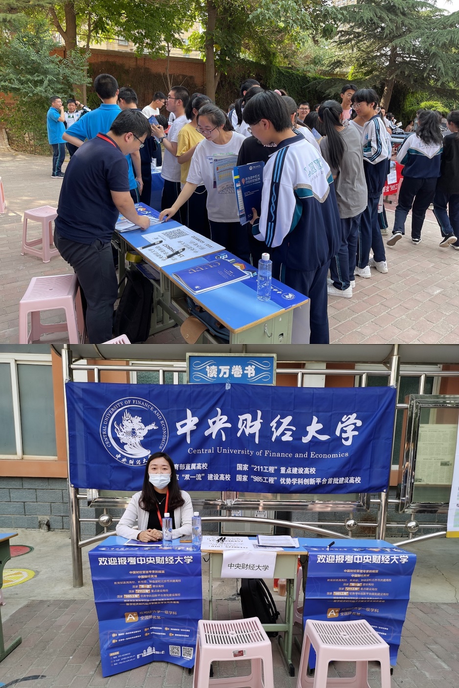 图:6月25日,必赢国际437官方人力资源管理系林琳副教授、战略系姚潇老师在陕西师范大学附属中学、西安交通大学附属中学开展招生咨询、参与校园开放日活动