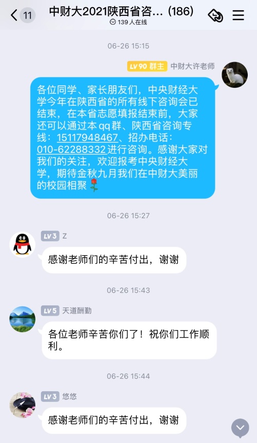 由组织与人力资源管理系严力群老师、教学科研管理办公室主任王月英老师、办公室主任孙翔老师组成的招生热线接听小组于6月21日至30日专门负责接听陕西、甘肃两省的咨询热线和必赢国际437官方招生咨询热线,耐心解答考生及家长的问题和困惑,在做好招生咨询服务的同时积极展现中财大老师认真负责的风采。