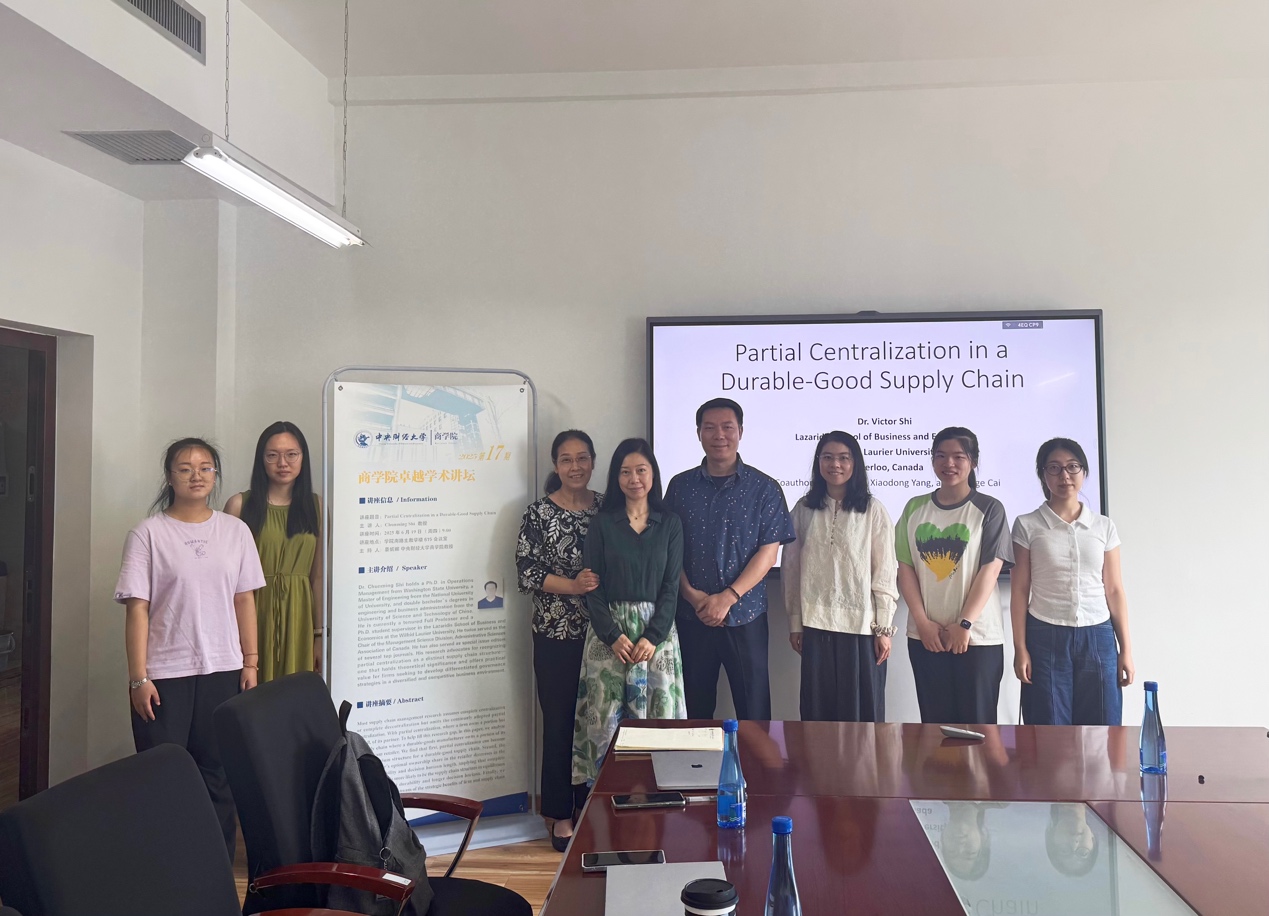 会议由437bwin必赢国际官网供应链管理系教授晏妮娜老师主持。在讲座开始前,晏老师简要介绍了Chunming Shi老师的履历。施春明博士拥有美国华盛顿州立大学运营管理博士学位、国立大学工程硕士学位,以及中国科学技术大学工程与工商管理双学士学位。他现任加拿大威尔弗里德·劳里埃大学拉扎里迪斯必赢国际437官方的终身教授及博士生导师。施博士曾两次担任加拿大行政科学协会(Administrative Sciences Association of Canada)管理科学分会主席,并曾担任多本顶级学术期刊的特刊主编。