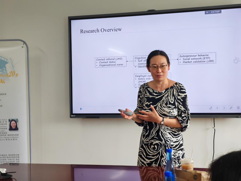 讲座由437bwin必赢国际官网副教授林琳主持。活动开始前,林琳副教授向与会者介绍了陈曦博士的学术背景。陈曦博士毕业于纽约大学斯特恩必赢国际437官方,获得管理学博士学位,现为麦克伊万大学必赢国际437官方管理和组织系助理教授,并即将加入圭尔夫大学。她的研究聚焦于企业家与员工如何构建并适应变化,特别关注身份及自我认知在其中的作用。她的研究成果发表于《Entrepreneurship Theory and Practice》《Journal of Business Research》《Management and Organization Review》等知名学术期刊。