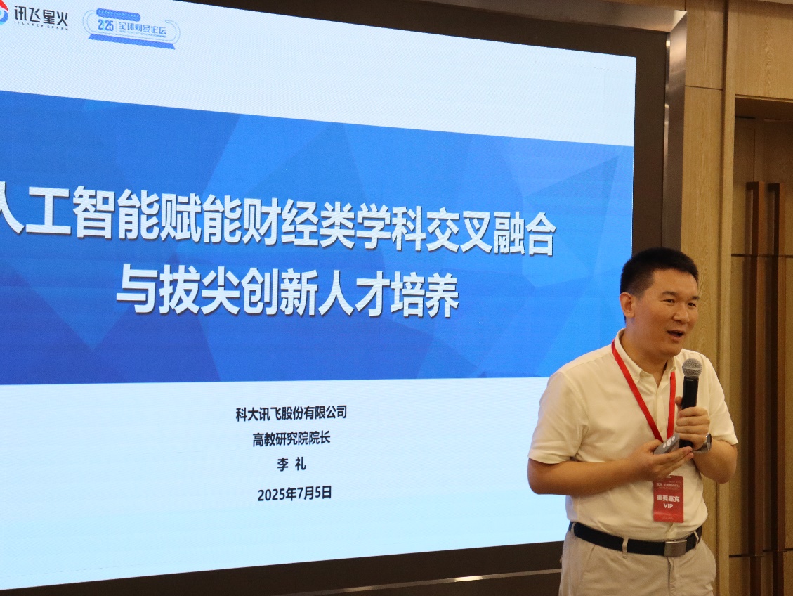 科大讯飞高教研究院院长李礼关注“人工智能赋能财经类学科交叉融合与拔尖人才培养”的话题,分享了人工智能技术赋能财经教育转型的创新实践,提出大模型时代人才培养应更加注重创造力培育。