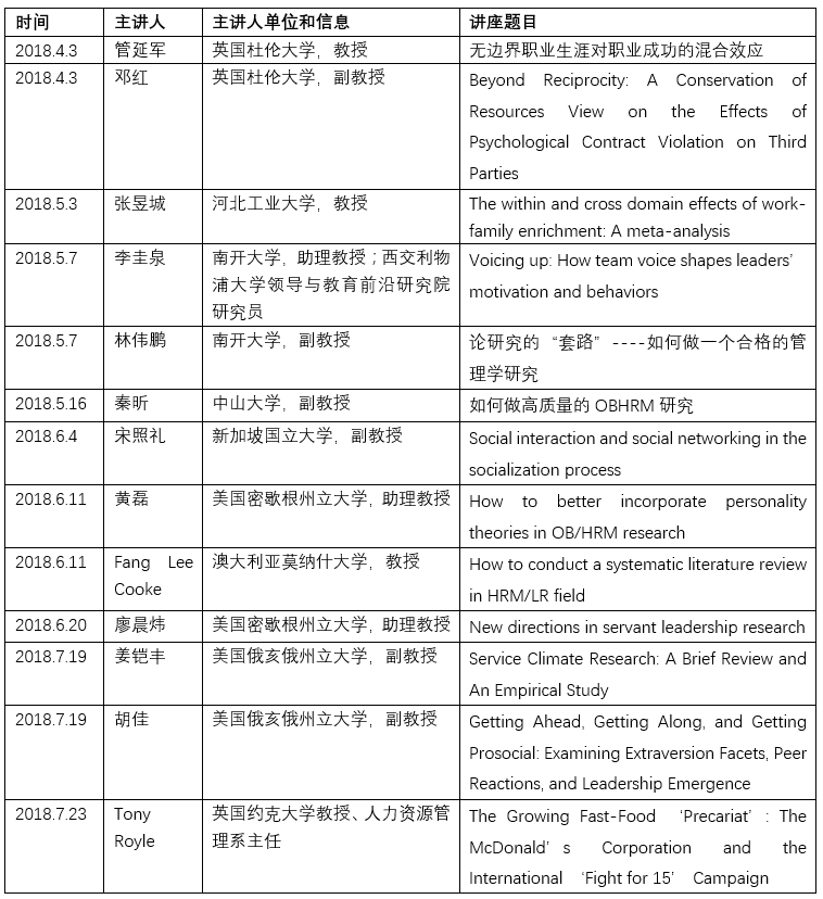 “中财组织与人力资源管理前沿系列论坛”2018上半年讲座汇总