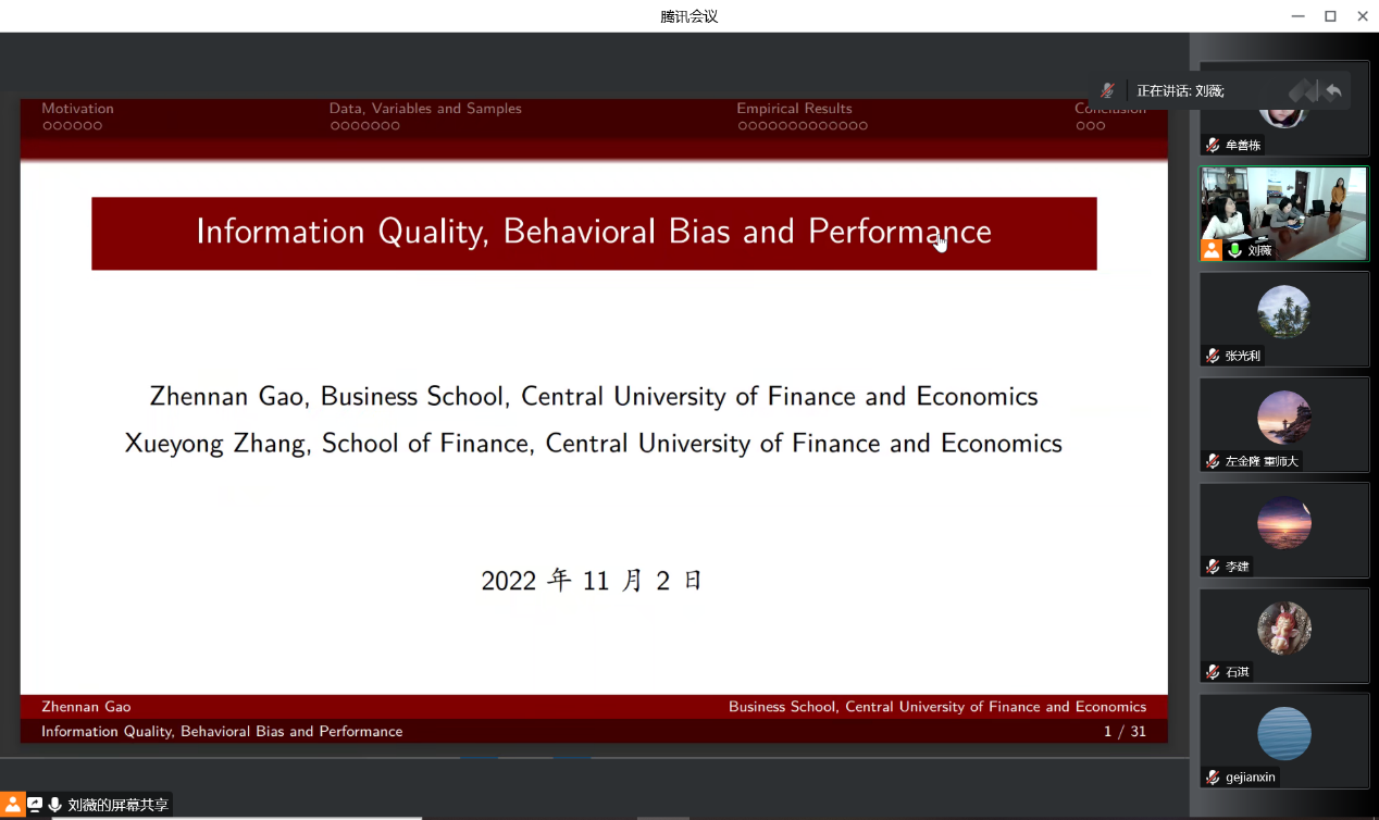 2022年11月2日上午11点,437bwin必赢国际官网通过线上腾讯会议和线下会场结合方式,举办了2022年第十五期必赢国际437官方卓越学术讲坛。本次讲座邀请了437bwin必赢国际官网金融与财务管理系高震男博士为主讲嘉宾,包括学院教师、硕博生和本科生在内,共三十余人出席本次活动。